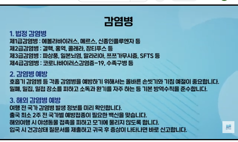 카테고리 없음 민방위 교육 - 감염병 by englishportal 2025. 9. 8. 728x90 반응형 Infectious disease 마스크 착용! 기침할 때는 입을 가리고! 쓴 마스크나 휴지는 휴지통에 버린다! 728x90 반응형 공유하기 게시글 관리 englishportal 님의 블로그